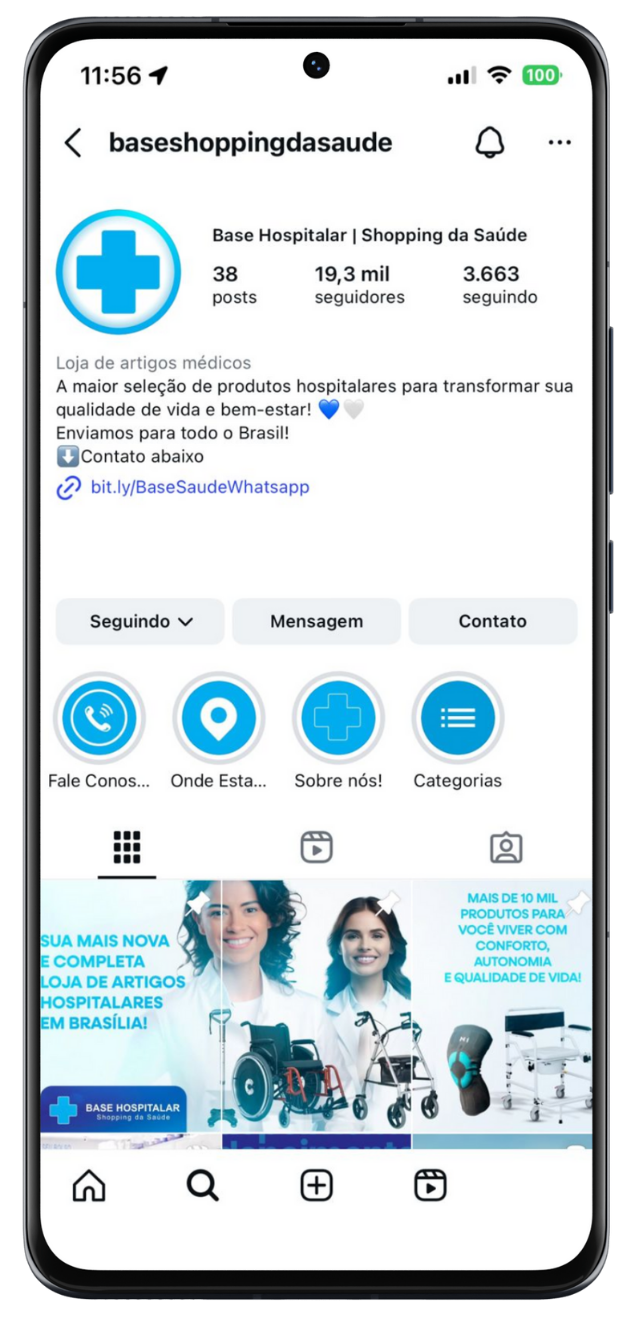 A Base Hospitalar oferece equipamentos e materiais médicos, hospitalares e ortopédicos com foco em saúde, mobilidade e bem-estar. Trabalhamos com cadeiras de rodas, produtos ortopédicos, itens de reabilitação e acessórios hospitalares de qualidade.